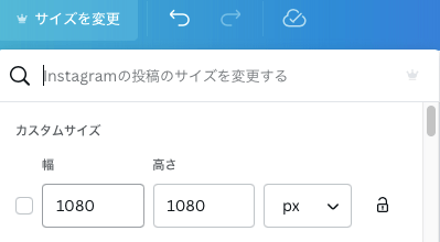 カスタムサイズで、幅や高さを変更して、デザインを微調整すれば一からやり直さなくて済みます。