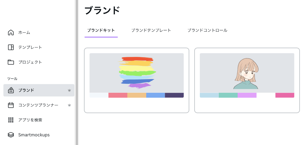 よく使うカラーやフォント、ブランドロゴをフォルダーごとに保存しておくことができます。デザインを編集したいときは、ボタンひとつで呼び出せるのでとっても便利!