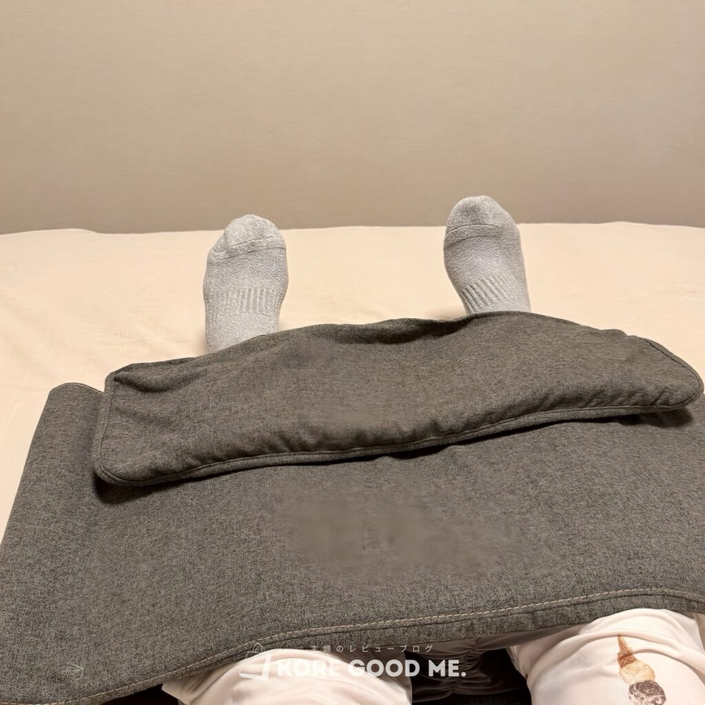 - ねるまえホットリフレは装着の手軽さから、寝る前のリラックスタイムに無理なく取り入れやすいのが魅力。ふくらはぎ中心に包み込まれるような圧力がその日のむくみを解消してくれます。