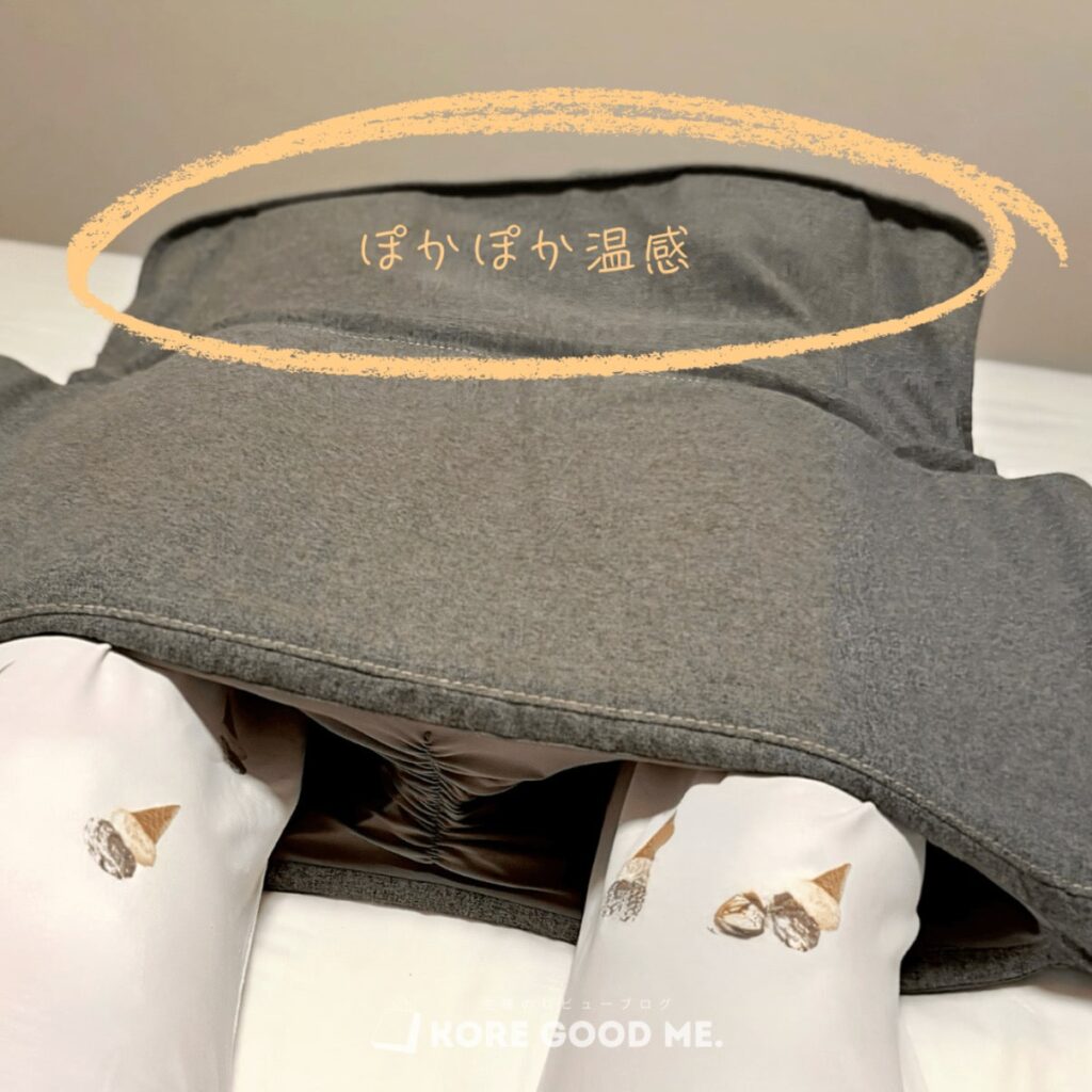 脚全体を覆い込む構造ではないため、夏場など暑さや蒸れを感じたときは、足を外に出して使うことができます。足裏は特に蒸れやすい部分なので、足を出し入れできるのは使い勝手の良さを感じました◎